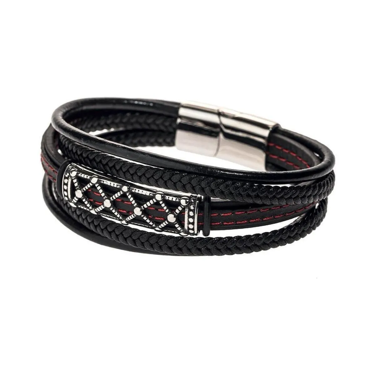 Optez pour ce bracelet Geographical NorwayColoris : Noir/RougeFermeture aimantéLogo Geographical Norway En cuirLes conditions de retour sont les suivantes :- Le(s) bijou(x) doivent être dans leur emballage d’origine- Neuf dans son état d’origine, sans avoir été porté (ne présenter aucun endommagement ou altération).