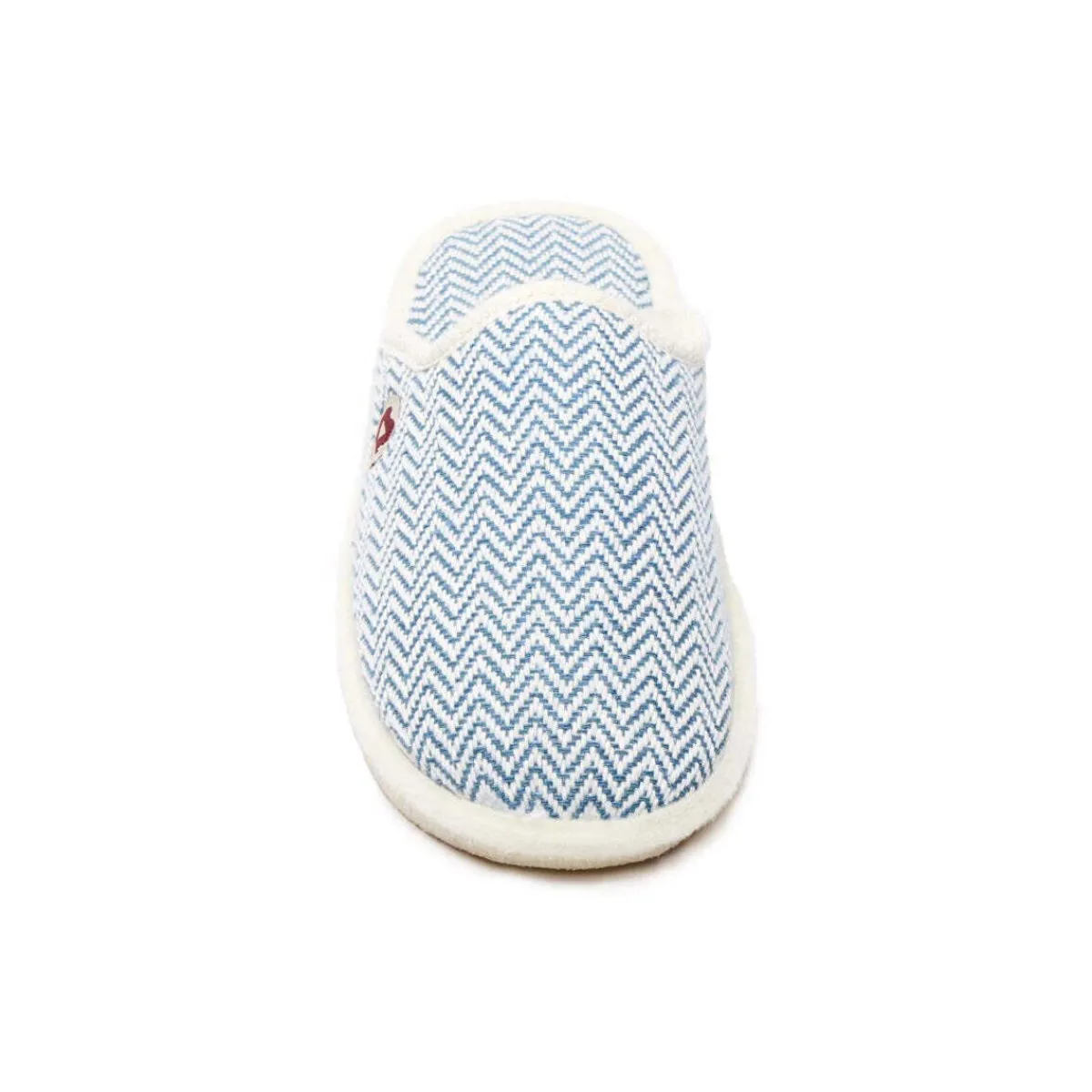 Marque : Amos – Modèle « La mi chevronnée bleue » – Chaussons mules intérieur laine – Couleur : chevrons bleu & blanc – Collection Mixte – Tige 47.5% Coton recyclé 23% Coton 29.50% Polyester – Doublure 100% Laine – Semelle intérieure 100% Laine – Semelle extérieure antidérapante 51% Laine 49% Polyester – Fabrication France