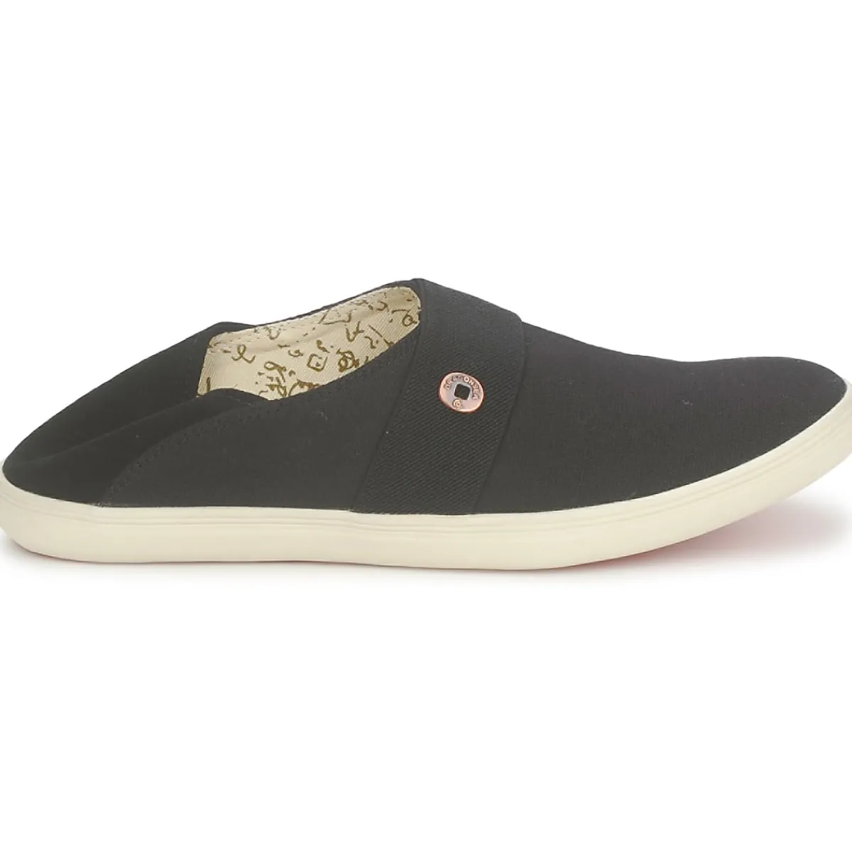 Tige et doublure en toile coton, renfort en suède / Herbes médicinales dans la semelle de propreté pour une parfaite hygiène du pied / Montage plat sans système d’amorti recommandé pour renforcer le système osseux et la musculature du pied