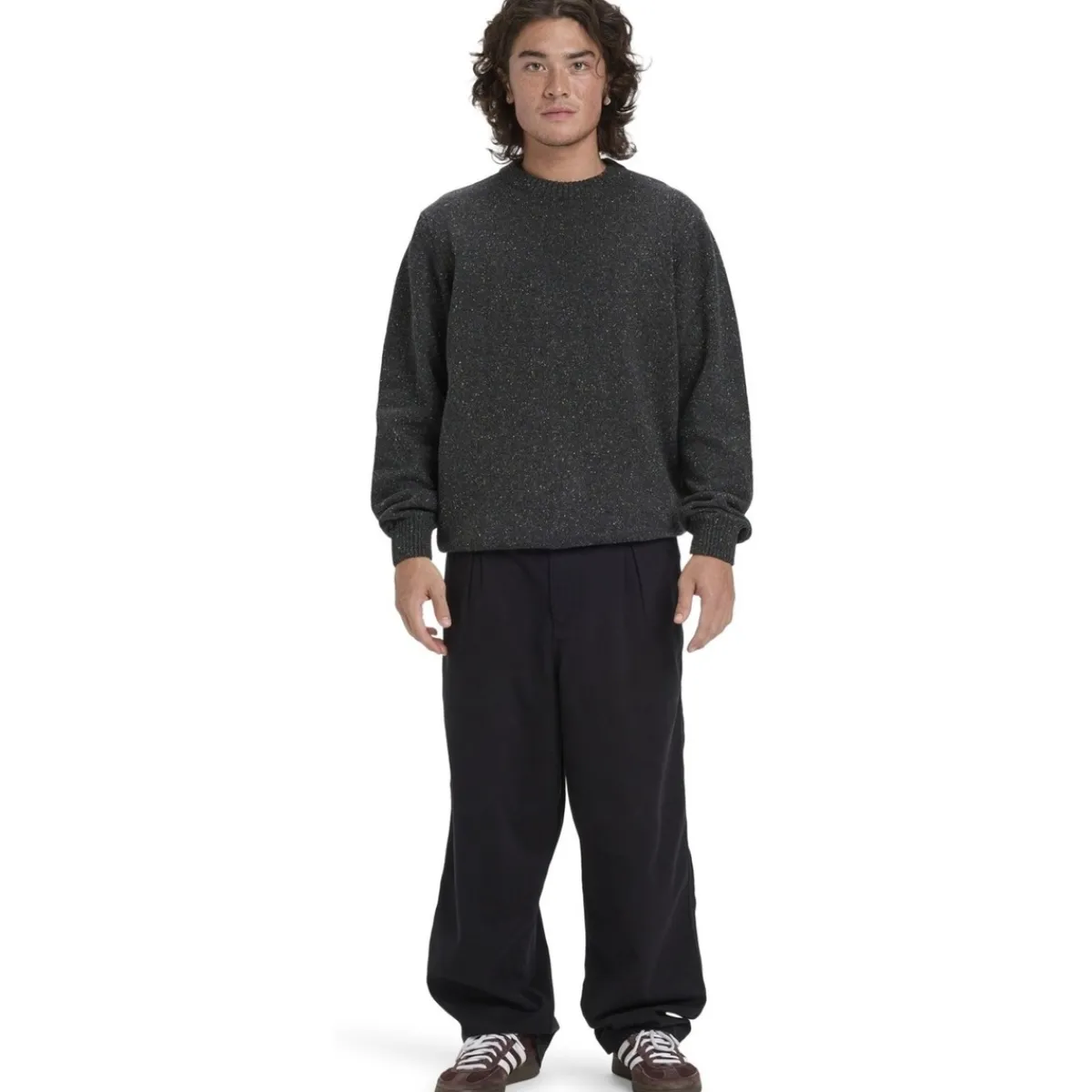 Pull pour Homme. Les caractéristiques produit sont les suivantes : Matière : mélange de fibres recyclées eco tweed, coupe : coupe regular, Col rond, Col côtelé, Poignets, Et ourlet, Fils à neps et Étiquette recyclée.