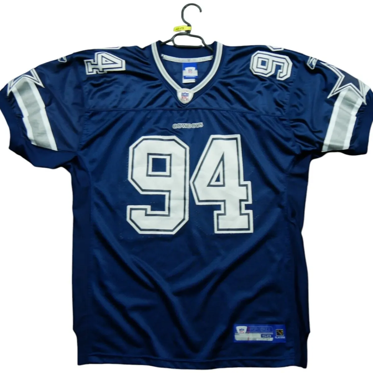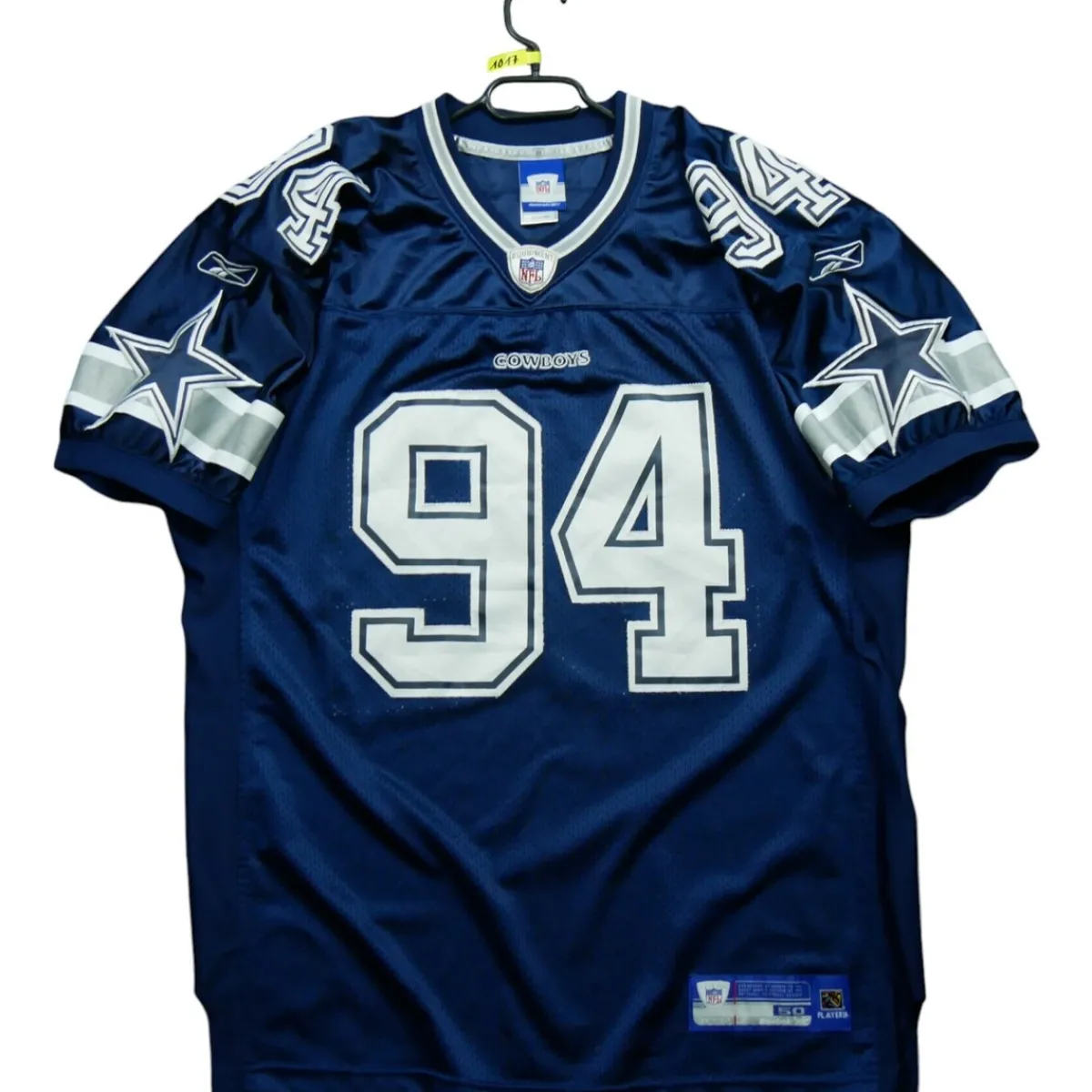 Ce maillot Reebok est une pièce authentique de collection pour les passionnés de football américain. Avec son design emblématique et ses couleurs fidèles aux Dallas Cowboys, il offre un style unique et une véritable authenticité pour les fans. POURQUOI CHOISIR UN PRODUIT DE SECONDE MAIN ? Choisir un vêtement de seconde main, c’est opter pour une démarche durable et responsable. En donnant une seconde vie à un produit déjà existant, vous contribuez à réduire l’empreinte environnementale de votre achat. De plus, c’est souvent une solution plus économique pour acquérir des pièces de collection authentiques. NOTRE ENGAGEMENT QUALITÉ Nous sommes fiers de vous offrir des vêtements de seconde main en excellent état, vérifiés et nettoyés par nos experts pour vous garantir une qualité irréprochable. Chaque produit que nous proposons a été soigneusement inspecté afin de répondre aux attentes des passionnés exigeants. Nous sommes également à votre disposition pour répondre à toutes vos questions et vous aider à trouver le produit qui convient le mieux à vos besoins et à votre budget. CONCLUSION Ce maillot Reebok Dallas Cowboys DeMarcus Ware 2005 Rookie NFL en taille XL est un vêtement de seconde main en bon état, vérifié et nettoyé par nos experts. C’est un produit authentique pour les passionnés de football américain, offrant style et fiabilité. En choisissant ce maillot, vous faites un geste pour l’environnement tout en bénéficiant d’un produit de qualité à un prix abordable. N’hésitez pas à nous contacter si vous avez des questions ou si vous souhaitez obtenir plus d’informations sur ce produit. Remarques : imperfections signalées par les flèches
