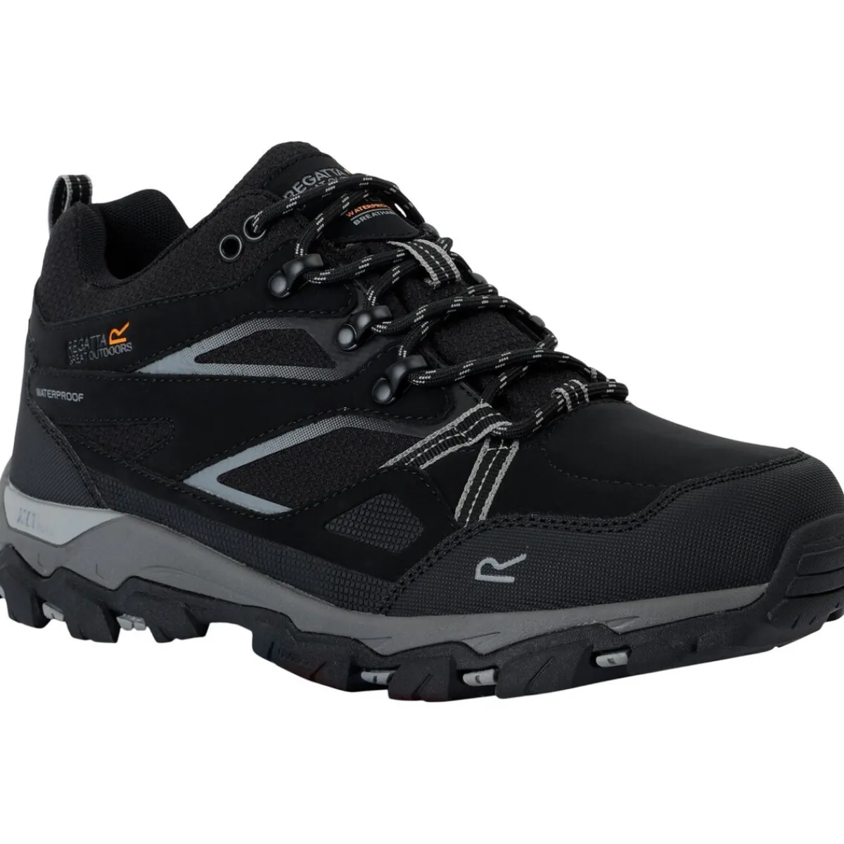 Regatta – Bottines de marche HOLCOMBE – Homme. Design/motif: Logo. Style du bout: Arrondi. Talon: Plat. Fermeture: À lacets. Caractéristiques: Rembourré, Col en néoprène, Languette en néoprène, Rembourré, Boucle pour enfiler. Caractéristiques des matériaux: Respirant, Résistant, Technologie hydropel (résistant à l’eau), Isotex (imperméable, tête hydrostatique 3 000 mm et respirant), Imperméable. Dessus: Durable, Polyester, PU (polyuréthane), Synthétique, Hydrofuge. Semelle intérieure: Moulée en EVA, Semelle intérieure recouverte de mousse respirante, TECFOAM. Semelle extérieure: Crans angulaires, Adhérente, Caoutchouc. Ref: UTRG11276