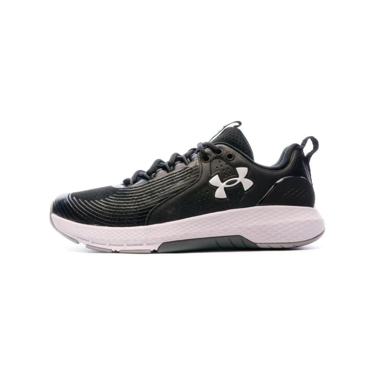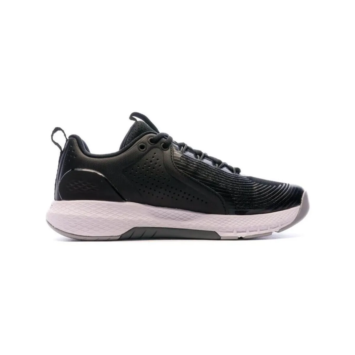 Chaussures de sport pour homme de la marque Under Armour Couleurs : Noir, Blanc Chaussures basses Tige en mesh et en synthétique Fermeture par lacets Logo UA Boucle de talon Semelle extérieur synthétique
